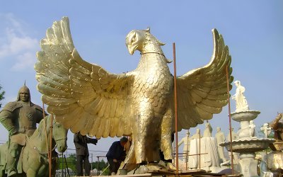 人立而起的老鷹銅雕塑