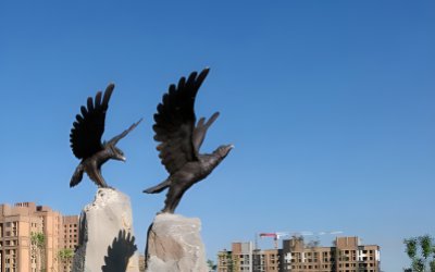 翱翔捕食的老鷹雕塑